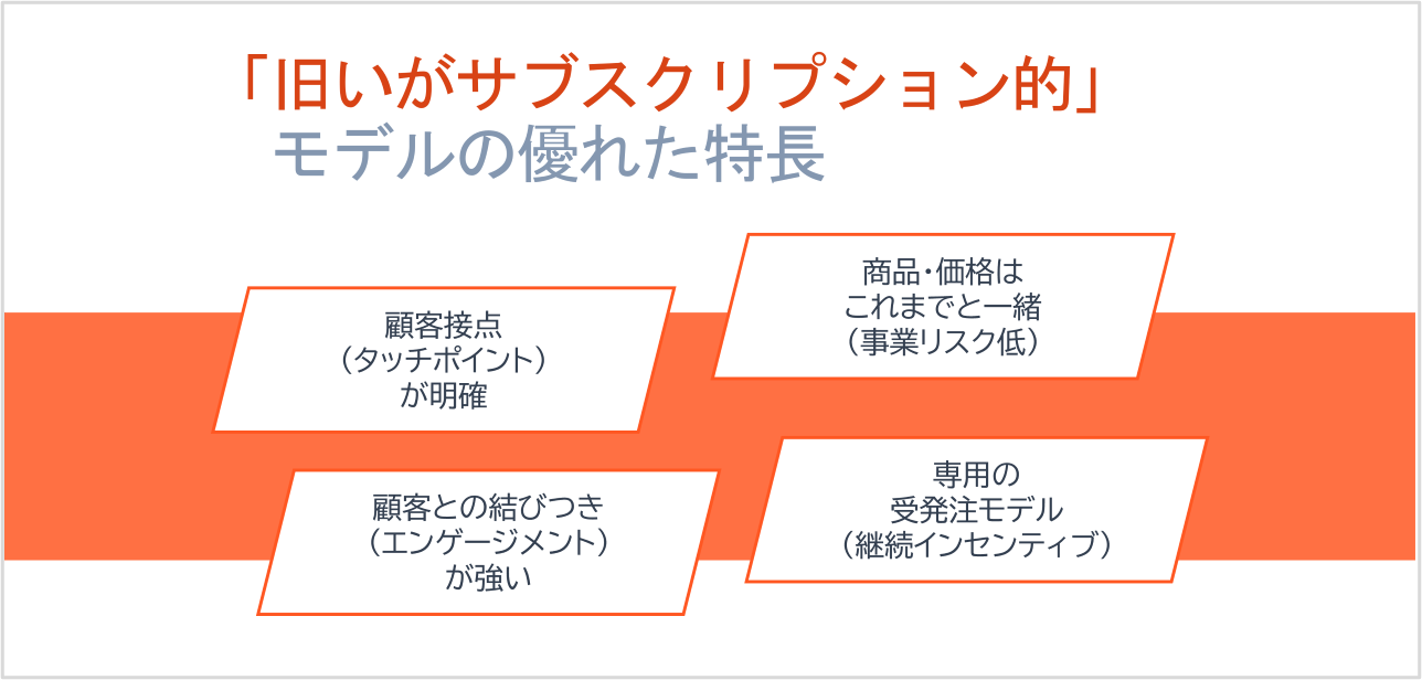 このサブちゃんのような「旧いがサブスクリプション的」なモデルには、現代のビジネスにも通じる4つの優れた特長があります。